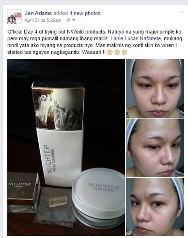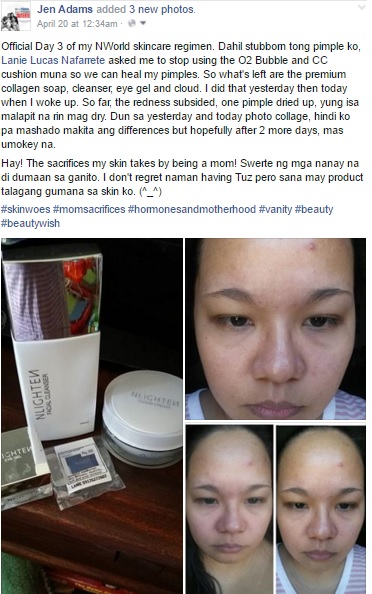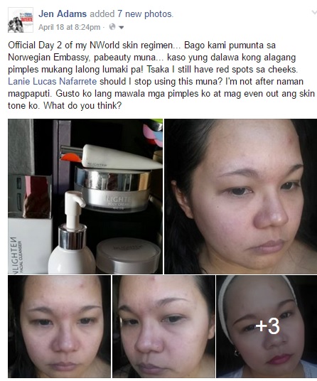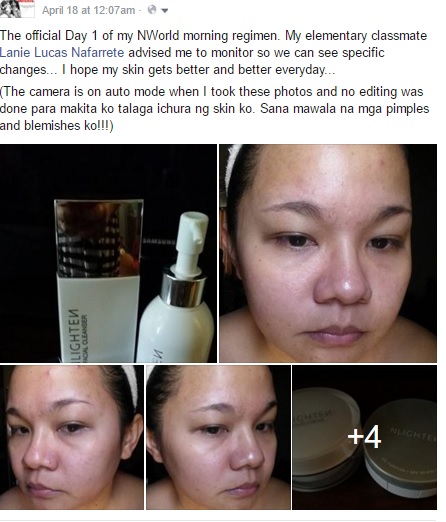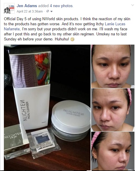 Official Day 5 of using NWorld skin products. I think the reaction of my skin to the products has gotten worse. And it’s now getting itchy Lanie Lucas Nafarrete, I’m sorry but your products didn’t work on me. I’ll wash my face after I post this and go back to my other skin regimen. Umokey na to last Sunday eh before your demo. Huhuhu! :’-(