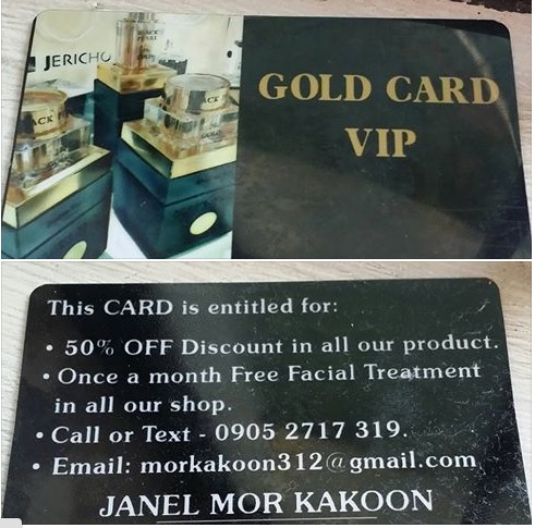 She also gave me a gold card so I can avail of free gold facials once a month and 50% discount on all their Jericho products. This was as a thank you for buying an expensive package from her.