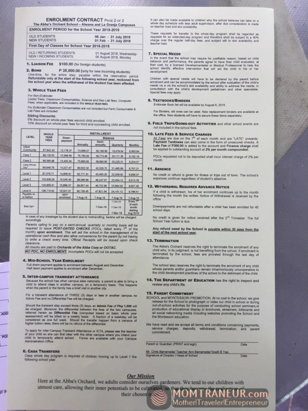 For anyone who’s interested to have a taste at what they do inside their classes, they offer this free 3-day immersion class. Your child will be treated as a regular student and will have all the privileges students have in those 3 days. Just schedule it with them which was what we did. Just head to their website and inquire from there. Be sure to choose the Philippine campus you want to try as they have many from Luzon, Visayas to Mindanao. (https://www.theabbasorchard.com/)