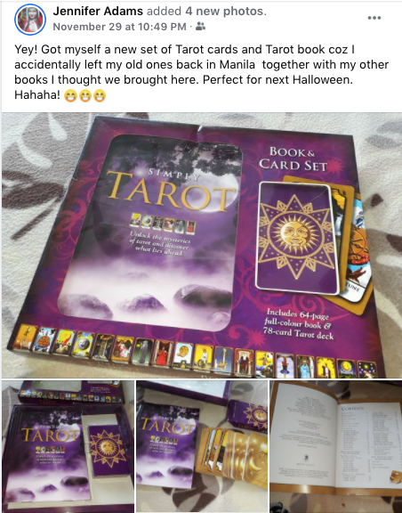 After Halloween, I ordered a new tarot card deck from Shopee. I left my old one back in Manila and I terribly miss doing tarot card readings. I use it for guidance and channeling energies and they’re really very helpful. It all boils down to belief and yes, I believe in the messages the cards tell me. So I did one reading for each one of my friends during our Christmas Eve party. That was the first time I used the new deck since I bought it and it just amazed me how each card that came up was the exact answer to their question! I was having goosebumps all over! I mean there I was thinking that I’ve already probably become rusty at these readings but OMG the cards were so spot on! That made me so happy! Thank you, spirit guides!
