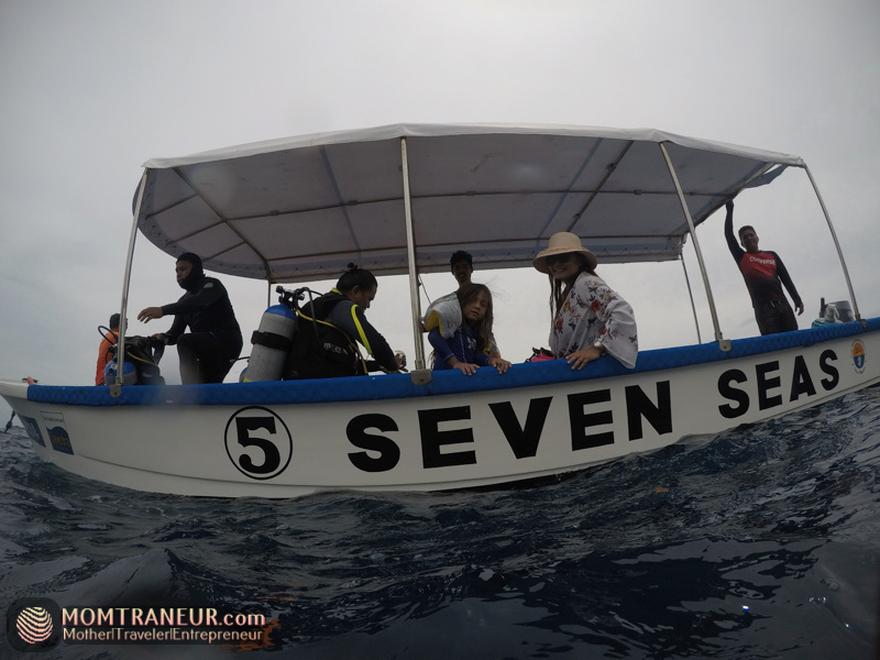 In case I forgot to mention before, this whole trip happened last Father’s Day weekend (which reminds me, I have yet to blog and vlog about our wonderful vacation last Mother’s Day, hehehe… soon). Despite the waters having a strong current that cloudy and windy morning, we still headed to the diving site. Mahal got a bit dizzy so note to self: bring Bonamine next time! 😉