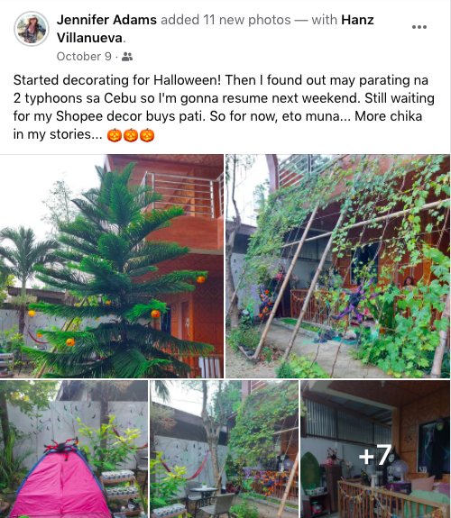 Then Halloween was upcoming and Iāve always wanted to beautify Mahalās place ā this mini-resort where we live ā and give it a touch of Jen but the hateful presence of this lady kept stopping me. For one, she lived in the room behind the reception area (which was why the reception area has been so messy and not according to my standards at least). This was also why the gazebo was in the same condition because that was her territory too. She was always there, sewing clothes, and not cleaning up her mess. She was a messy girl. When she left, I immediately redecorated the reception area and the gazebo! In fact, I got so inspired and felt so at peace when she left that I decided to do a whole week of partying for Halloween ā after getting the whole mini-resort decorated for the spooky festivities!
