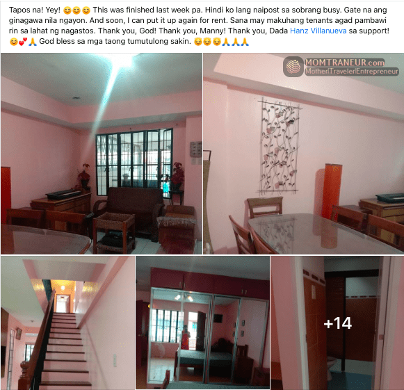 On my part, one of the things I’m going to do is to have my house in Alabang rented out again. This is one of the reasons why I have been busy the past month or so. I had my house repaired, repainted, and a bit renovated to get it ready for tenancy.
