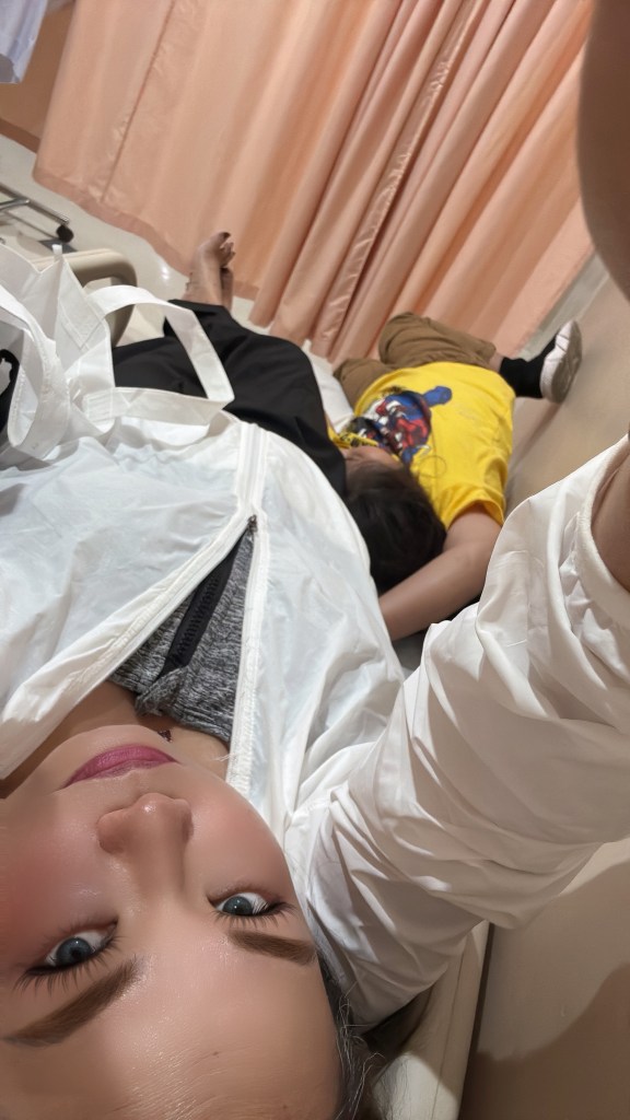 This was Tuz and me lying on a bed in the Emergency Room after the nurses finished the paperwork with me. We were waiting for Hanz, who had gone to the cashier so the hospital could admit me. Just hours earlier, we thought we were going to hear a heartbeat.